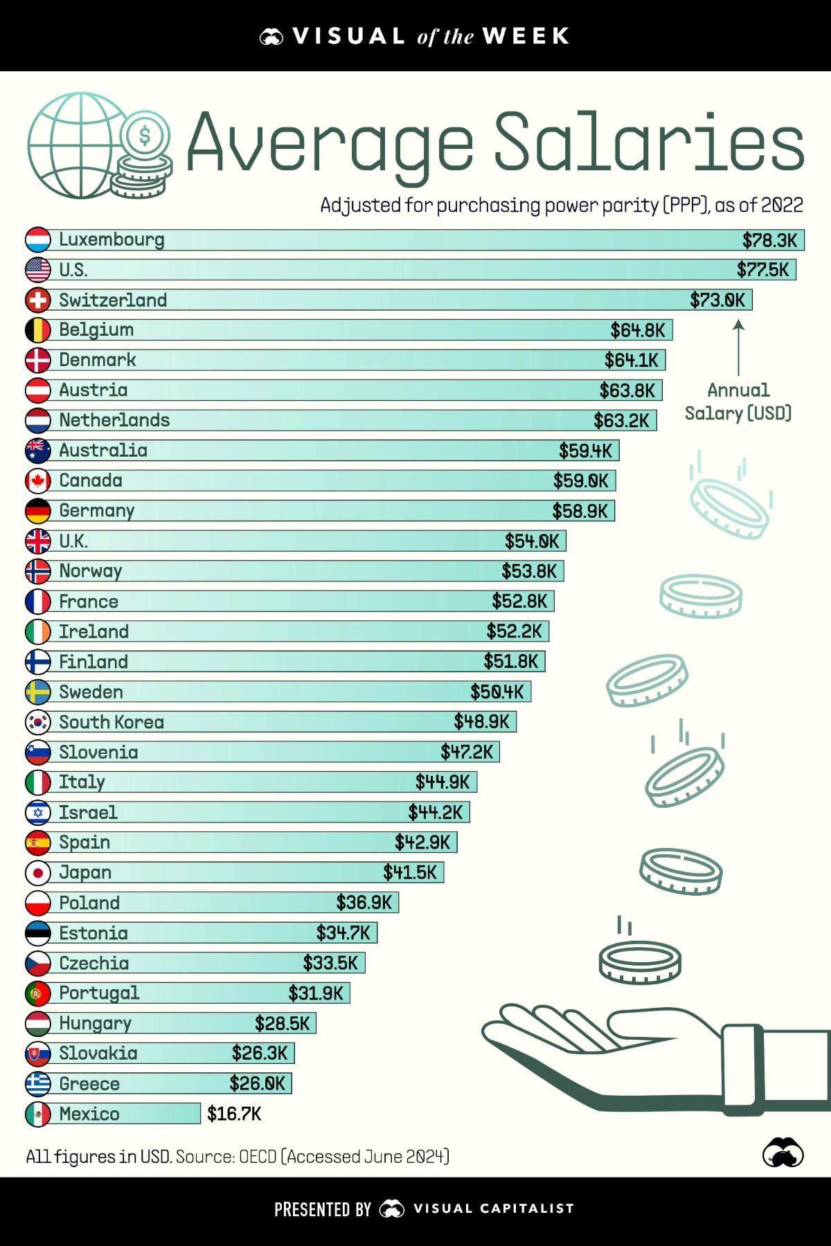 【画像】先進国の平均年収一覧wwwwwwwwwwww