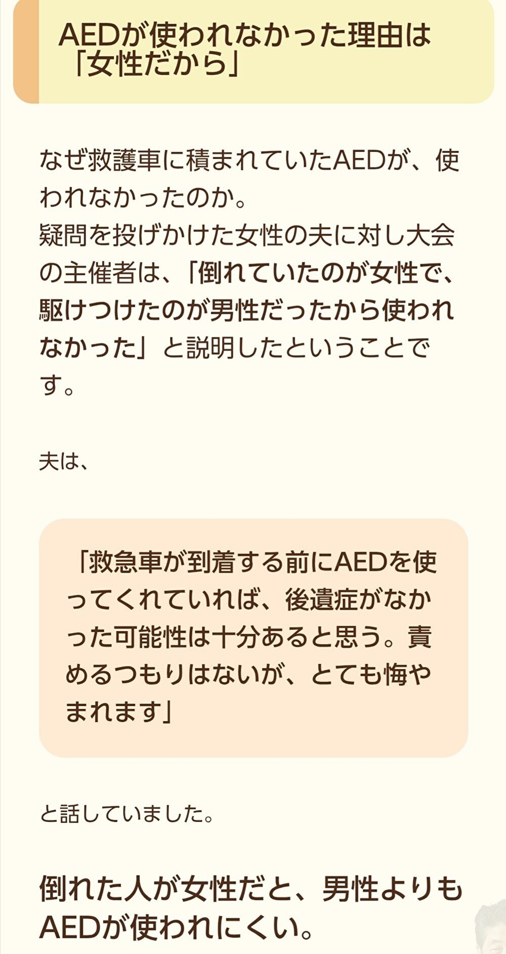 【朗報】まんさん「女性にAED、ためらわないで!訴訟とかまずないから!」