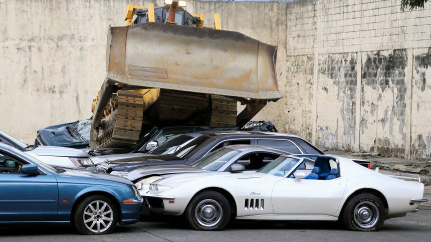 ジャガー(Jaguar)やレクサス(Lexus)、コルベット・スティングレイ(Corvette Stingray)を含む、ドイツ製の最高級セダンや日本製のスポーツ用多目的車(SUV)などが、首都マニラの関税局構内で破壊された。当局によると、車は密輸されて押収されたものだという。