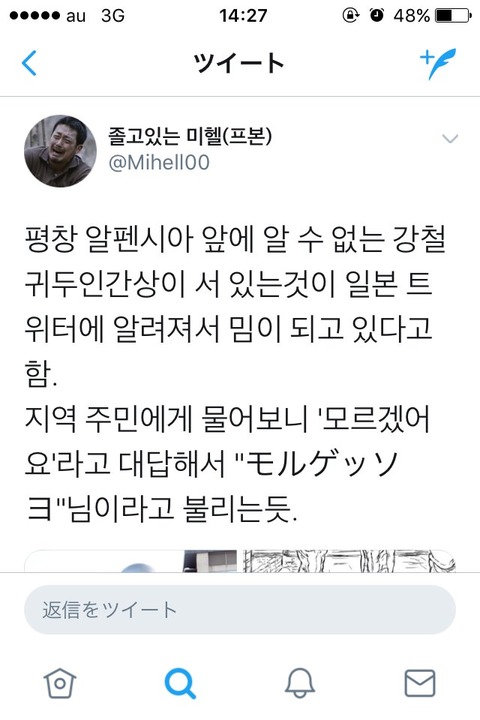 平昌アルペンシア前に謎の鋼亀頭人間像が建っていることが日本ツイッターに知られ、ミームとなった。現地住民に聞いたところ「モルゲッソヨ(韓国語で「わからないよ」の意)」と返答があったので「モルゲッソヨ様」と呼ばれるようになった。