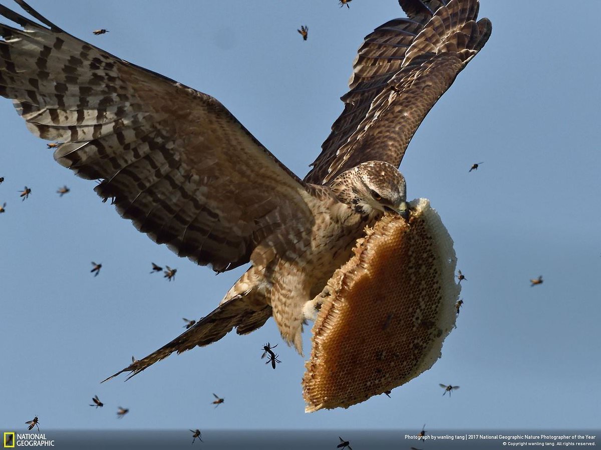 鷹さん、蜂さんが集めたハチミツを巣ごと奪う暴挙wwwwwwww (※画像あり)