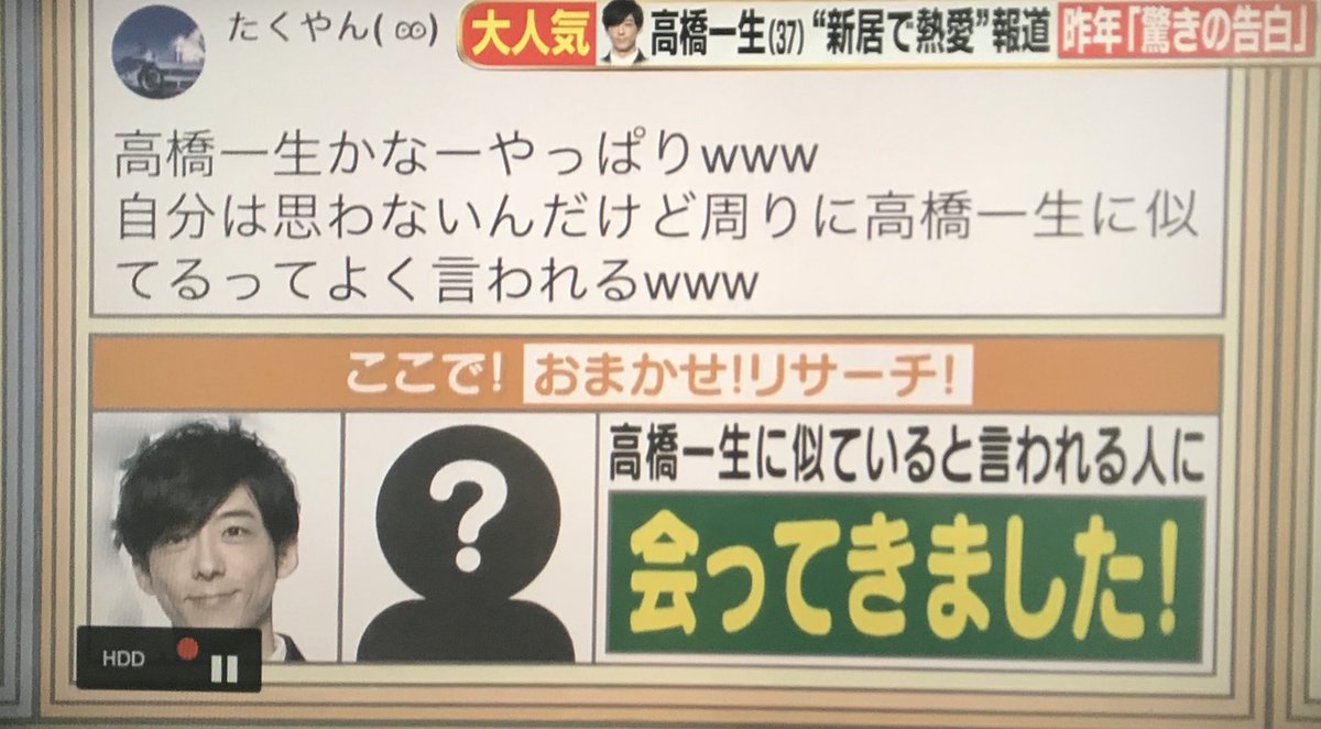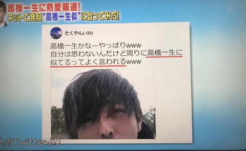 オタクさん、うっかりTwitterに「高橋一生に似てると言われる」と書き込んだばかりにテレビに晒されるwwwwwwwwwwwwwww