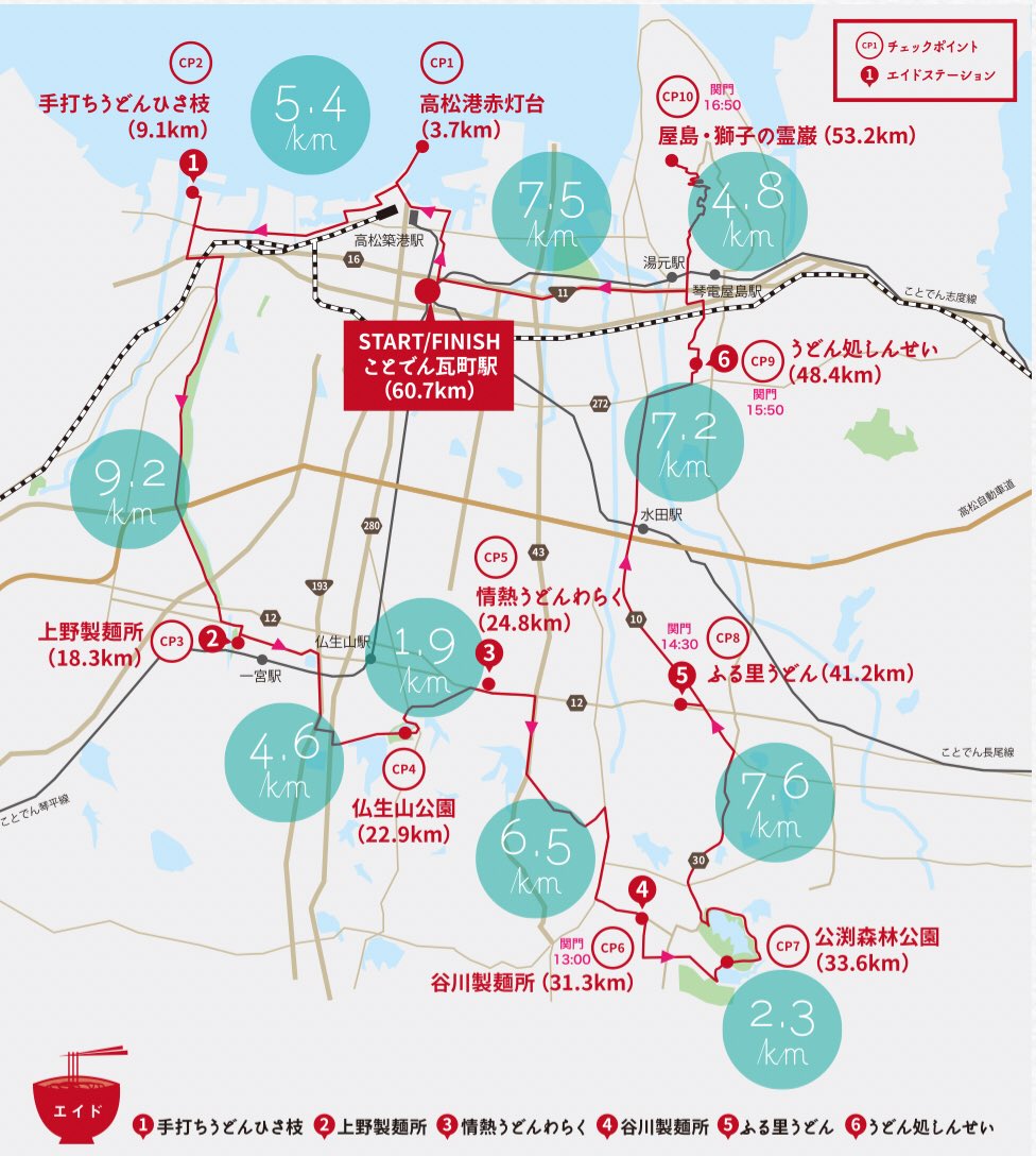 マラソンの途中うどんを食べる「ウルトラうどんマラニック」が香川県で開催 60キロのコースを走りながら6軒のうどん店に立ち寄る