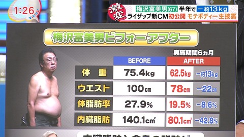 梅沢富美男、ライザップでモテボディになるwwwwwww (※画像あり)
