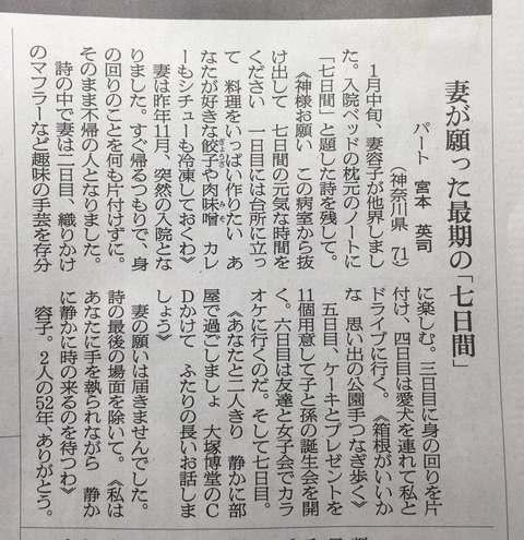【悲報】71歳男性、亡き妻が残した詩を全国に晒してしまうwwwwwwwwwww