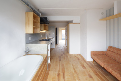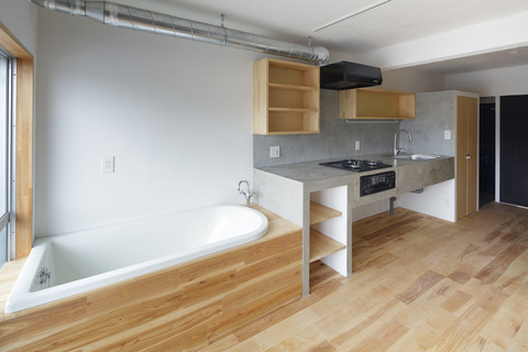 この間取りは、住環境を整え、身体をいたわり、巣作りの力をつけながら生活をすることで、自然にパートナーができる……という考えのもと作られたとのこと。最大の特徴は、リビング。なんとリビングの中にバスタブがドーンと置かれており、さらに部屋のど真ん中にはポールダンス用の棒が設置されているんですよ。