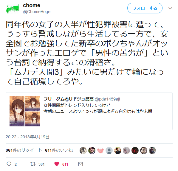 フェミさんブチギレ、大挙してマジレス