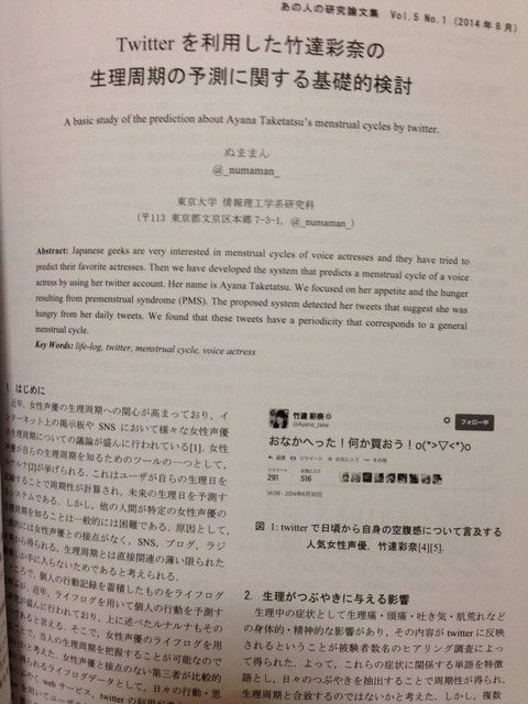 東大生さん、声優の竹達彩奈さんの生理周期を完全予測!論文を発表へ!!!