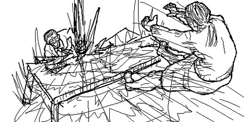 夫は「泣けばすむ問題ではない」とダイニングの机の上を手で「バンッ!!!!」と上からたたきました。
