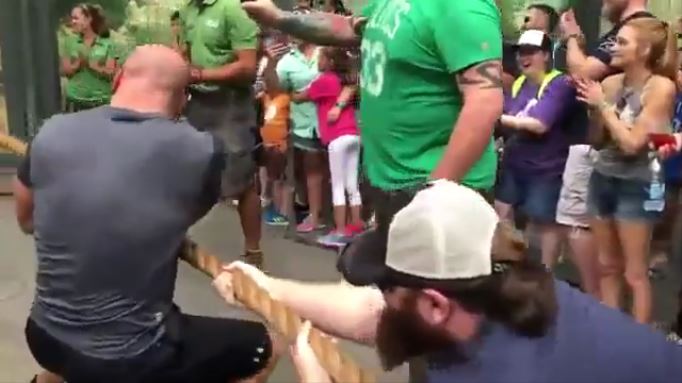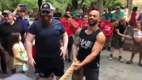 【話題】WWEレスラー3人vs雌ライオン一匹で綱引き勝負 ライオン圧勝でギャラリーがライオンに拍手喝采