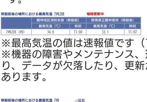 【悲報】館林市、新旧地点で1.5度の差が出てしまうwwwwwwwwwwwww