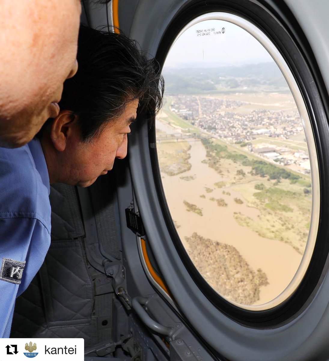 【速報】安倍晋三さん、まさかの上空からの被災地視察wwwwwwwwwwww