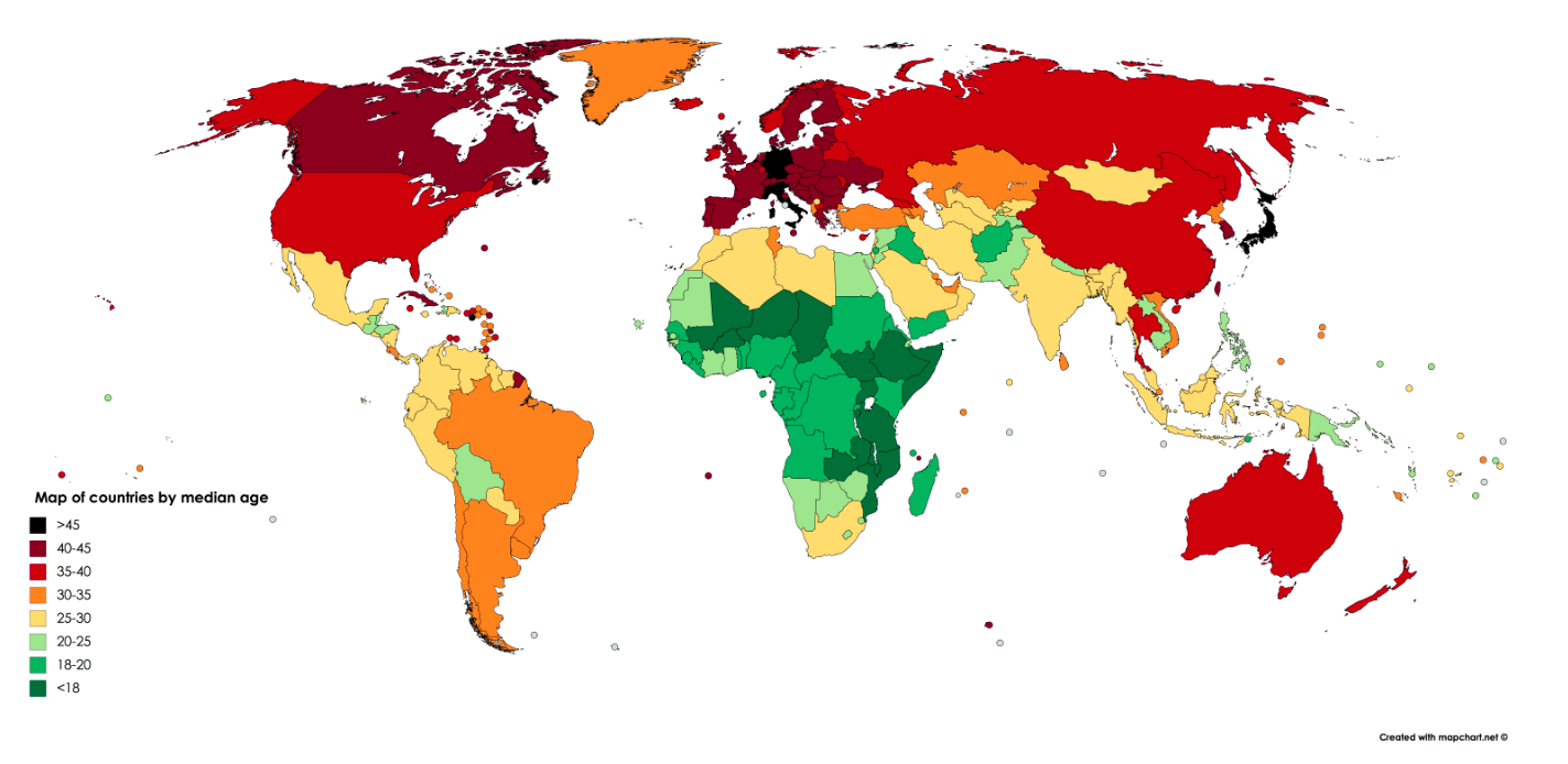 スレッド「世界各国の平均年齢をご覧ください」より。最新の世界の平均年齢をまとめたデータが海外で話題を集めていたので反応をまとめました。