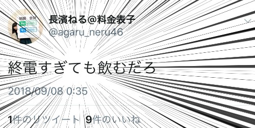 ——————まあ、金曜日の夜の会話ということもあって「終電過ぎても飲むだろ」というツイートをしてしまったようだ。