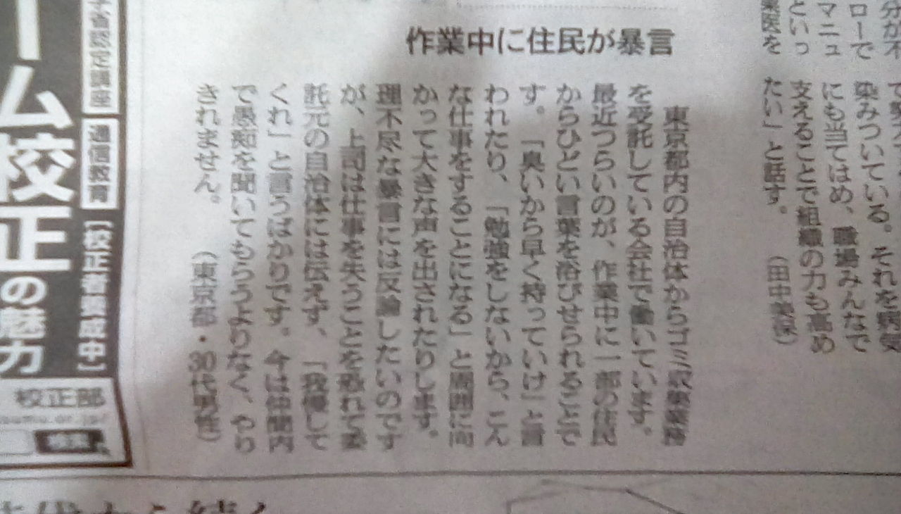 作業中に住民が暴言