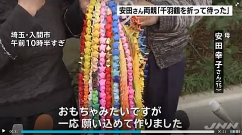 【画像】安田純平さんの両親「千羽鶴を折って待った」 →千羽鶴の形が変だと話題に
