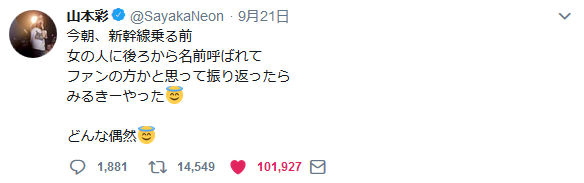 山本彩の何気ないツイート いいね!が10万を越えてしまう