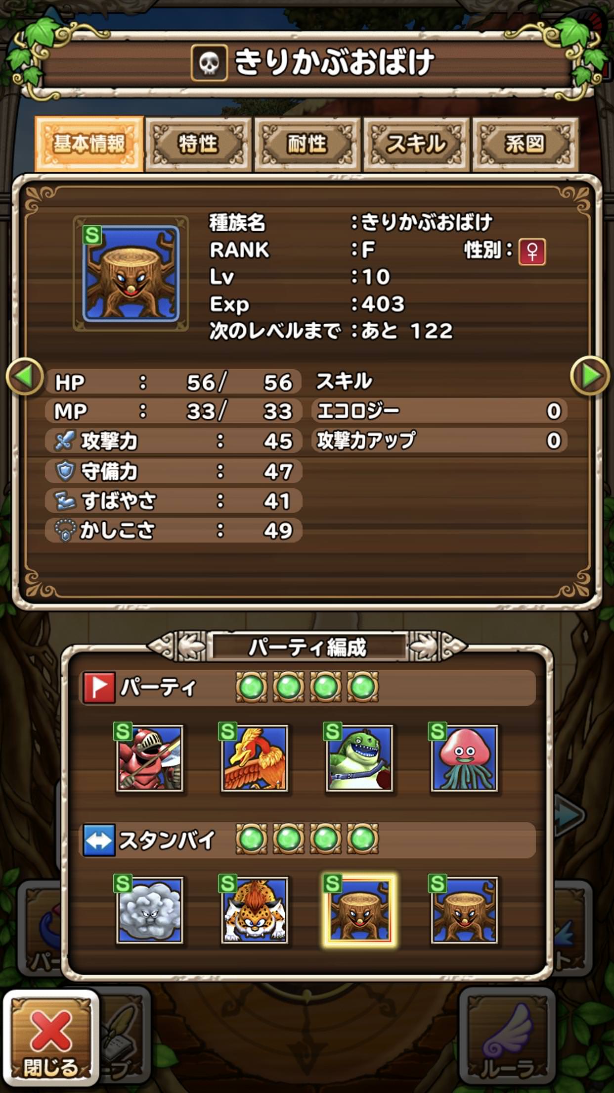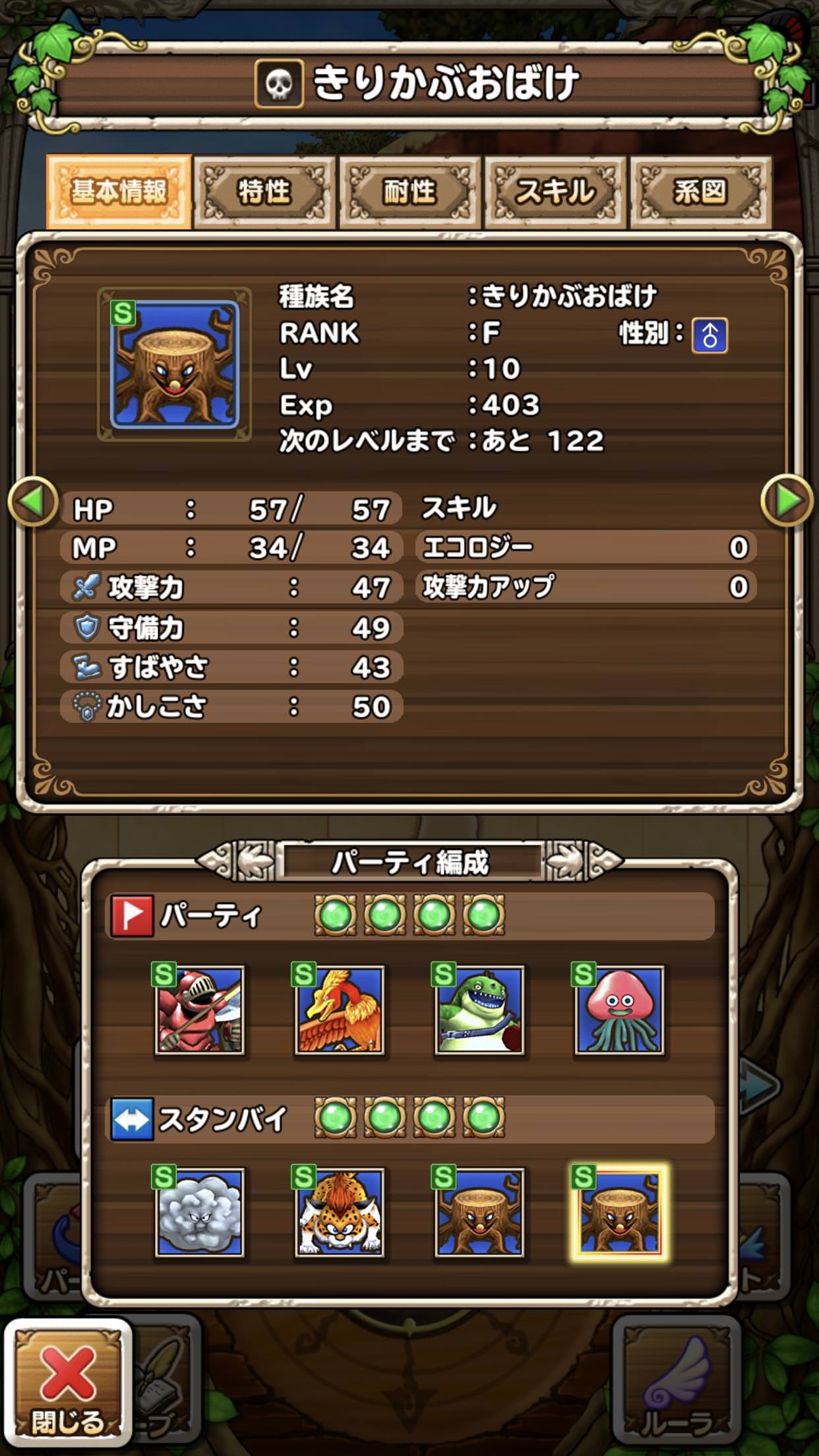 メスのきりかぶおばけよりもオスのきりかぶおばけの方がステータスが圧倒的に高い