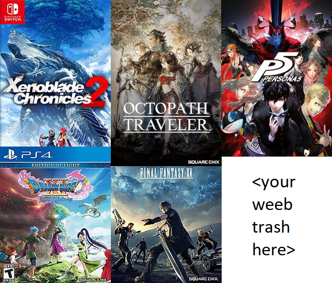 ホーム > ニュースetc > 外国人「最近の日本のRPGで一番面白い作品ってどれなの?」 2018/11/27 スレッド「この世代のJRPGで一番面白い作品ってどれなの?」より。引用:4chan (海外の反応) 1万国アノニマスさん この世代のJRPGで一番面白い作品ってどれなの? 2万国アノニマスさん 客観的に見ればドラクエ11 3万国アノニマスさん 個人的にゼノブレイド2が好きでもそれは俺の精神年齢が低いからかもしれない ↑ 万国アノニマスさん 俺達みんな体は大人で心は子供だから 続きを読む Source: 海外の万国反応記 - ニュースetc