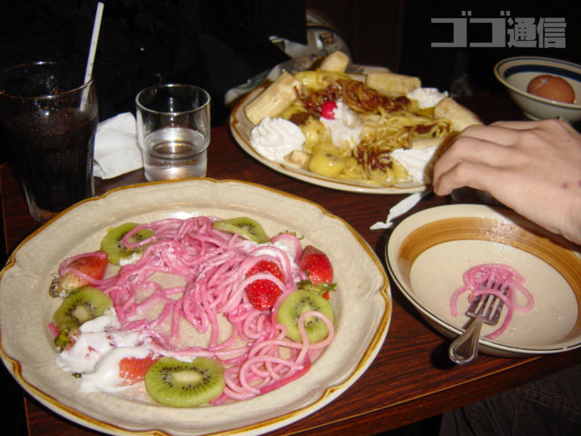 店のメニューはイチゴスパ、あんかけスパ、激辛ピラフのピカンテ、バケツ一杯のかき氷など様々なメニューが存在する。