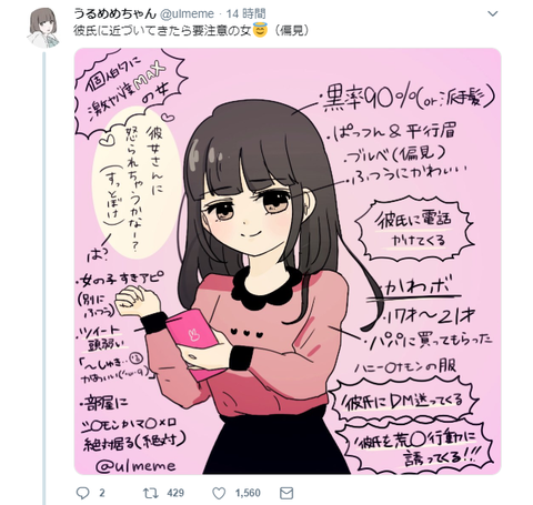 彼氏に近づいてきたら要注意の女😇(偏見) pic.twitter.com/u1VByT0C0W
