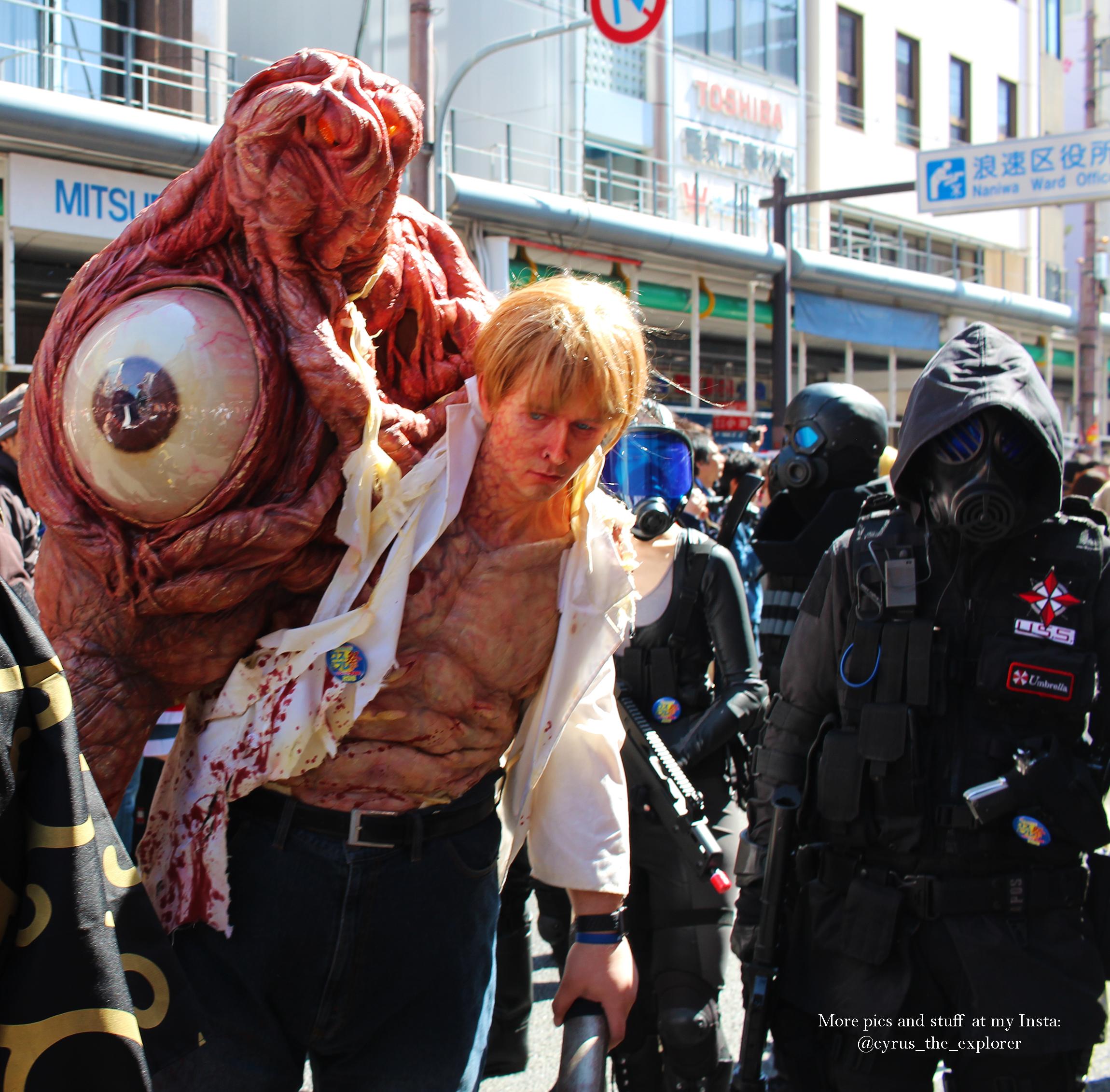 スレッド「今日大阪のフェスタで見かけたバイオハザードのガチなコスプレを見てくれ」より。