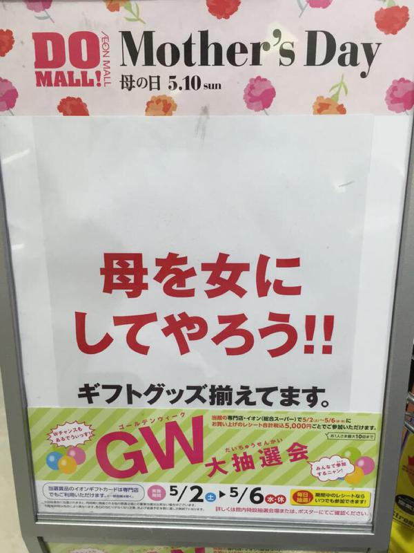 【悲報】イオン、母の日のキャッチフレーズが酷すぎて炎上wwwwwww (※画像あり)