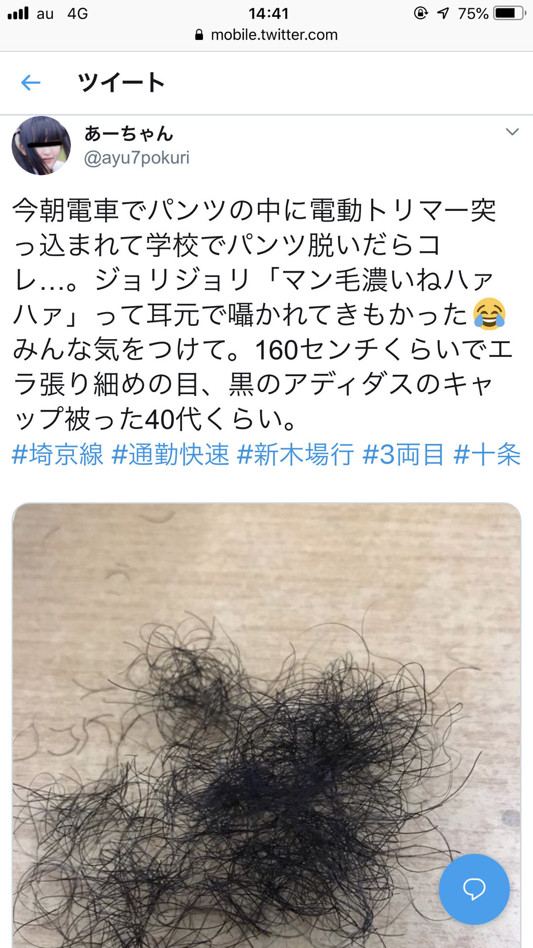 【速報】女子学生、電車でマ●毛を剃られる
