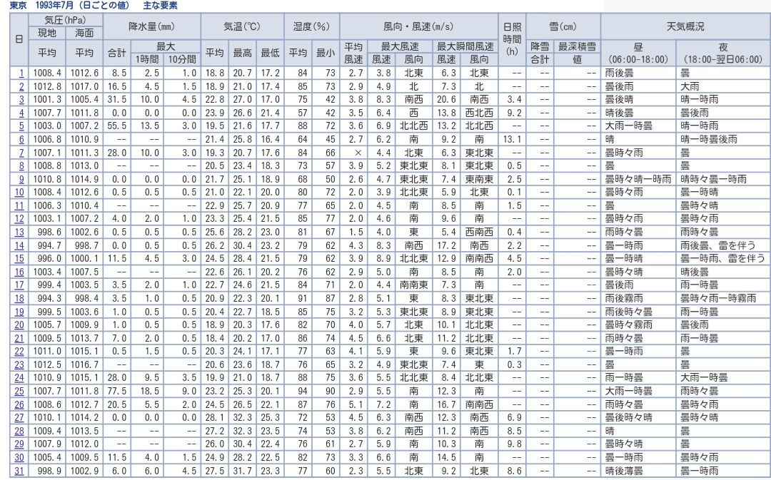 東京都心では10日まで6日連続で最高気温が25度を下回り、7月としては全国的に冷夏となった1993年以来。