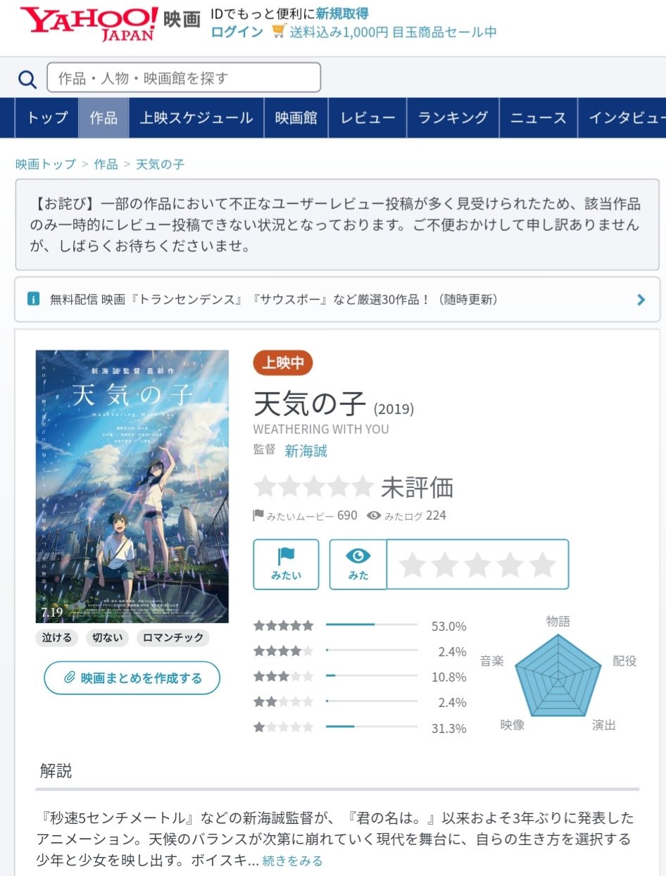 ホーム > ニュースetc > 【悲報】天気の子、レビューサイトで低評価が相次いだため、全削除してレビュー禁止にする 2019/07/19 1: 風吹けば名無し 2019/07/19(金) 05:57:24.66 ID:U17MH9ao0.net ※関連記事【悲報】新海誠さんの最新作「天気の子」まだ公開前なのに低評価を付けられてしまう… 続きを読む Source: 妹はVIPPER - ニュースetc