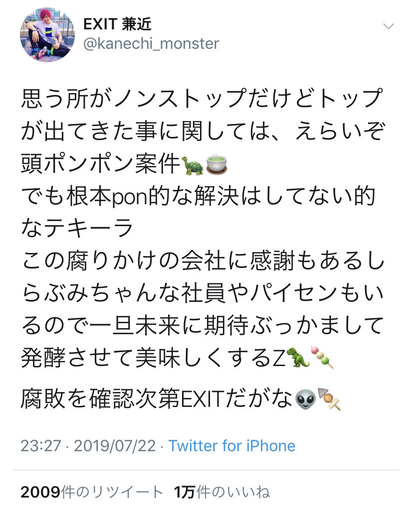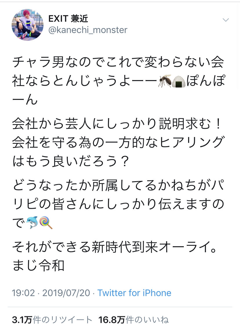 ホーム > ニュースetc > 【画像】吉本芸人EXIT兼近、今回の騒動に物申してるけど意味わかんねえwwwww 2019/07/24 1: 名無し募集中。。。 2019/07/23(火) 00:18:59.54 0.net コイツwwwww 続きを読む Source: 妹はVIPPER - ニュースetc