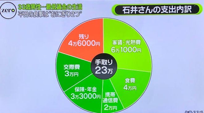 テレビで最低賃金例「手取り23万円」の生活を紹介 月の食費は4万円