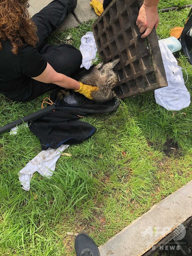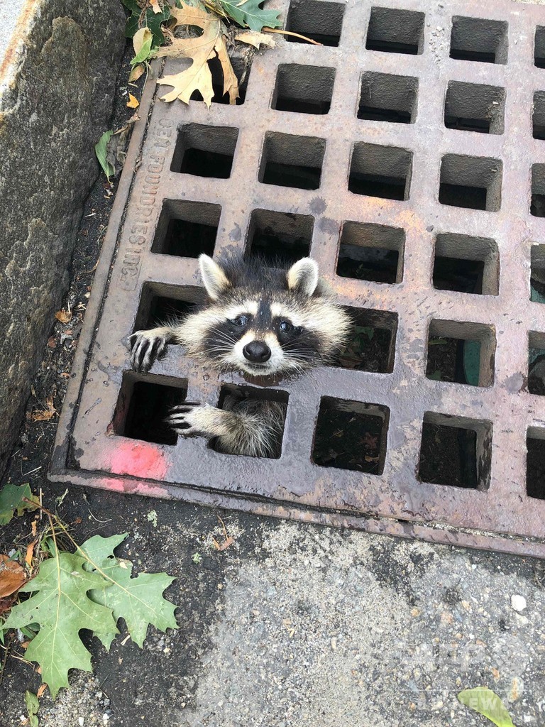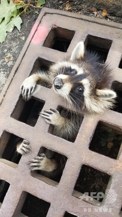 【朗報】排水溝の鉄格子にはまってしまったアライグマ、かわいすぎて人気になる (※画像あり)