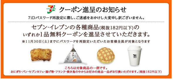 セブン、「7iD」のパスワード再設定した人に“おわびクーポン”配布 おにぎり・パンなど1品無料に