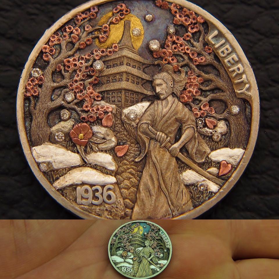 スレッド「100%手彫りのサムライに宝石を嵌め込んでいる」より。SNSで手彫りの硬貨を製作しているアーティスト、ジョッシュ・レンジャー氏の作品が海外で話題を集めていたので反応をまとめました。