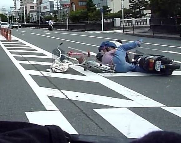 【画像】チャリカスまんさん、バイクに轢かれた上オッサンに至近距離でパンツを覗かれる