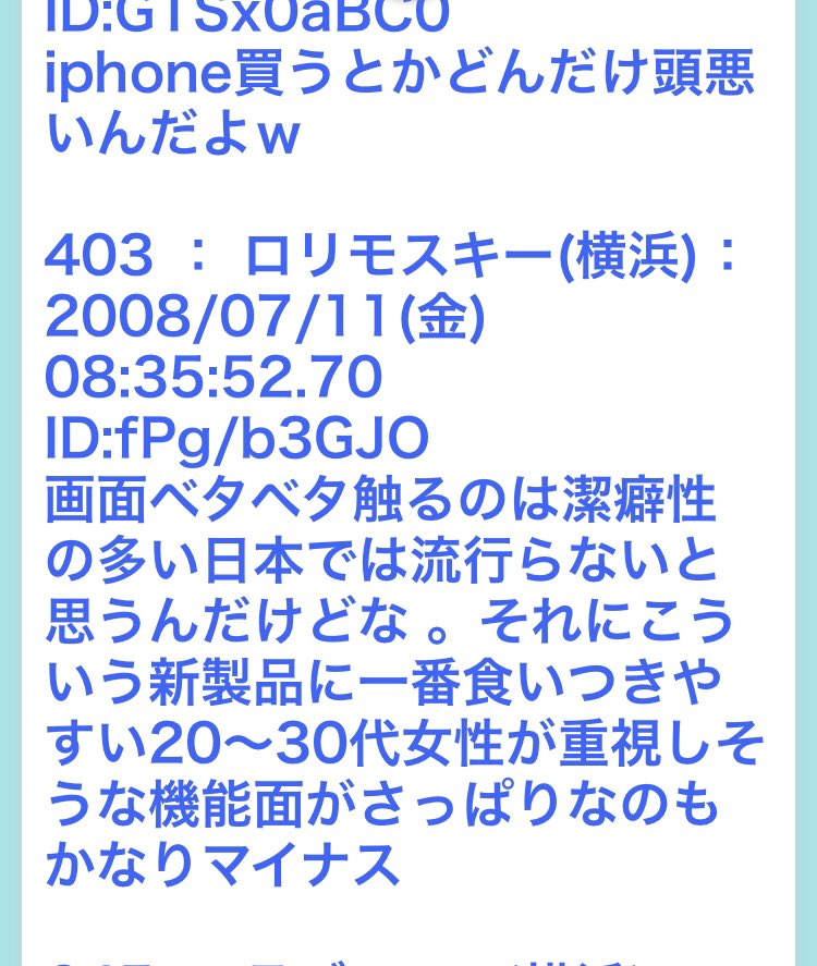 ホーム > ニュースetc > 【朗報】初代iPhone発売時の2ちゃんねるの反応が話題に 2019/09/26 1: 風吹けば名無し 2019/09/20(金) 09:46:08.92 ID:tznXf/Km0.net 初代iPhone発売当時の2ちゃんの雰囲気ってのが好きでたまーに見てる 続きを読む Source: 妹はVIPPER - ニュースetc