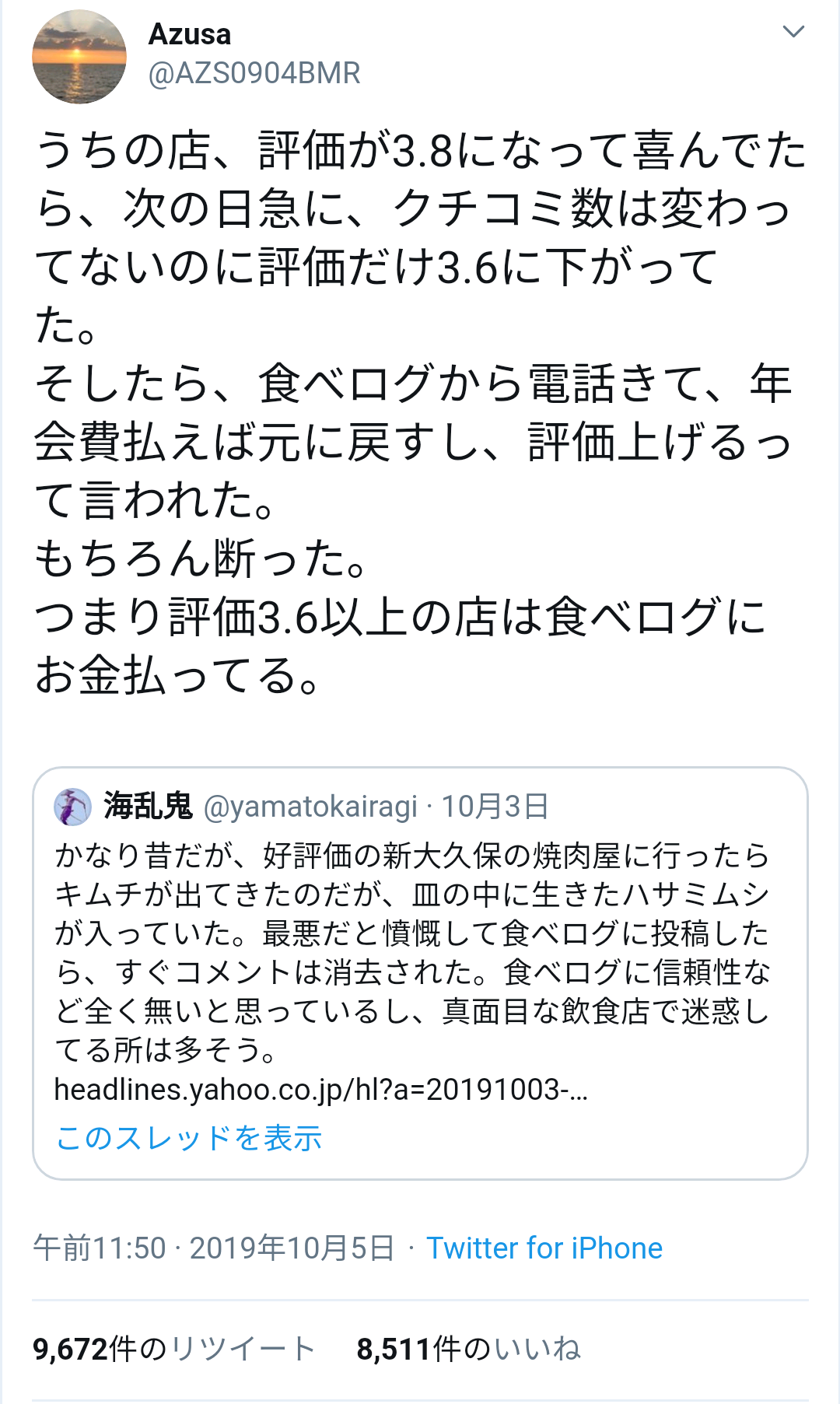 ホーム > ニュースetc > 食べログの現実がこちらwwww 2019/10/07 1: 風吹けば名無し 2019/10/05(土) 22:43:26.40 ID:ZBXX1Q+3M.net https://twitter.com/AZS0904BMR/status/1180314252269113344 2: 風吹けば名無し 2019/10/05(土) 22:43:36.69 ID:ZBXX1Q+3M.net 食べログやばない? 続きを読む Source: 妹はVIPPER - ニュースetc