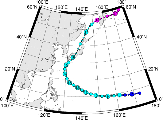 最低気圧は940hPa、最大風速は45m/sを記録した