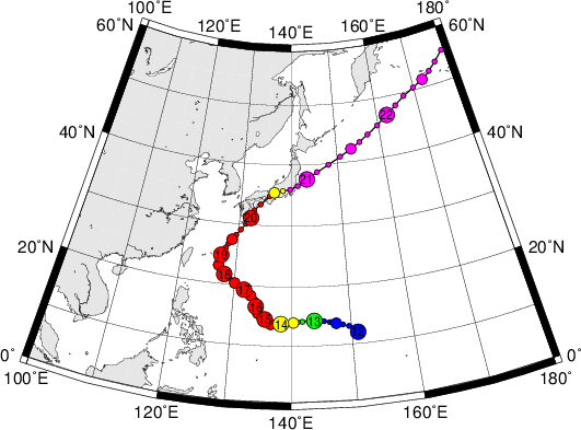これは同緯度の台風における中心気圧の最低記録として、いまだに破られていない