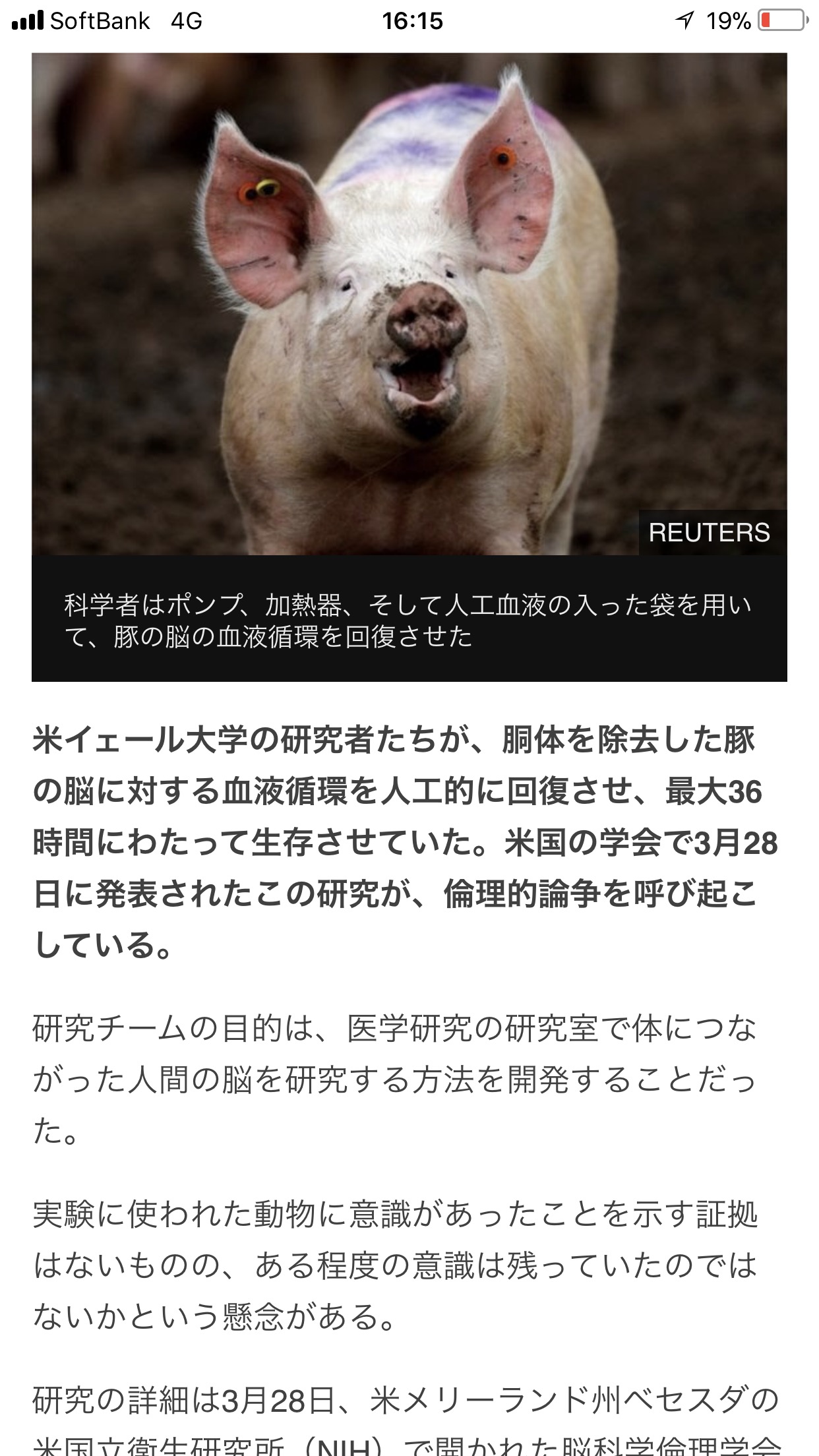 豚の脳だけ延命させる研究に