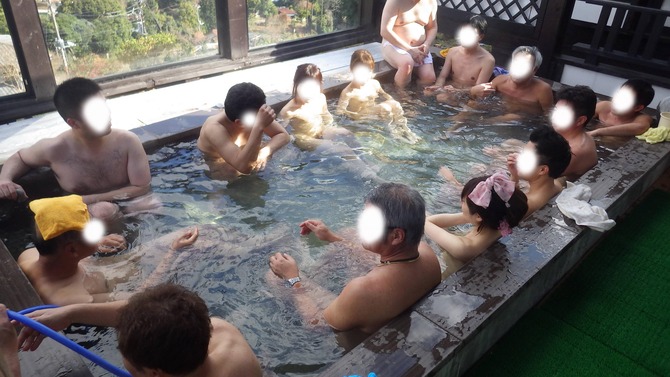 【画像あり】混浴サークルのオフ会風景がマジでエッチ。こんなの絶対勃起するだろ