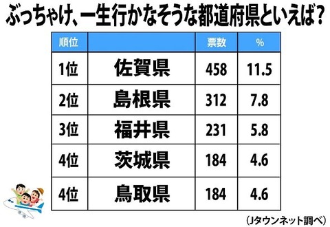 【悲報】「一生行かなそうな都道府県」、唯一関東からトップ5にランクインしてしまった県があるらしい