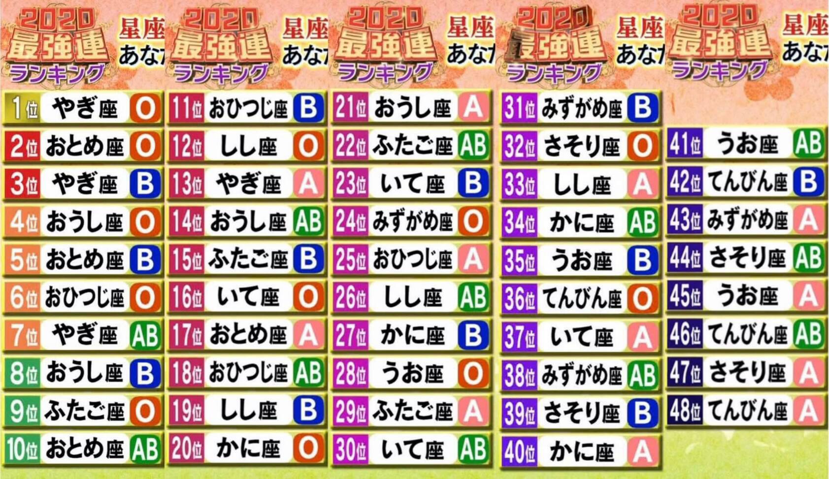 【画像】これが2020年の運勢 13位以下の奴wwwwwwwwwwwwwwwwwwww
