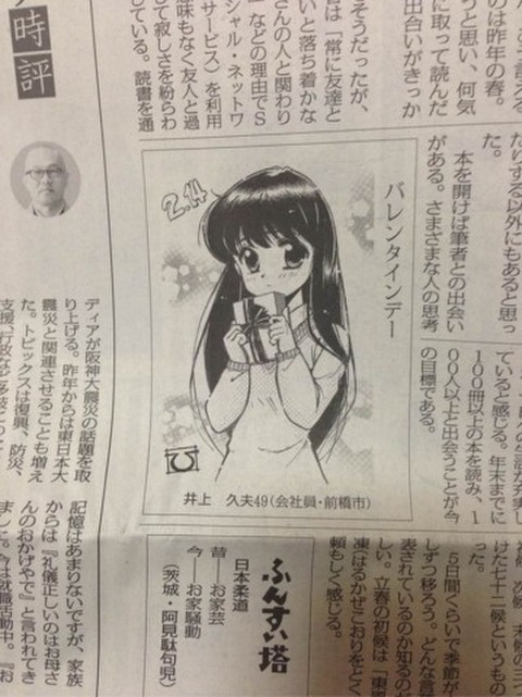 ホーム > ニュースetc > 【画像】52歳のおじさんが、新聞の投書欄に投稿した美少女絵がこちらwwwwwwwwwwwww 2020/01/30 1:風吹けば名無し:2020/01/29(水) 06:08:54 h h h 2:風吹けば名無し:2020/01/29(水) 06:09:20 好き 3:風吹けば名無し:2020/01/29(水) 06:09:24 この角度でしか書けへんのか 続きを読む Source: ラビット速報 - ニュースetc