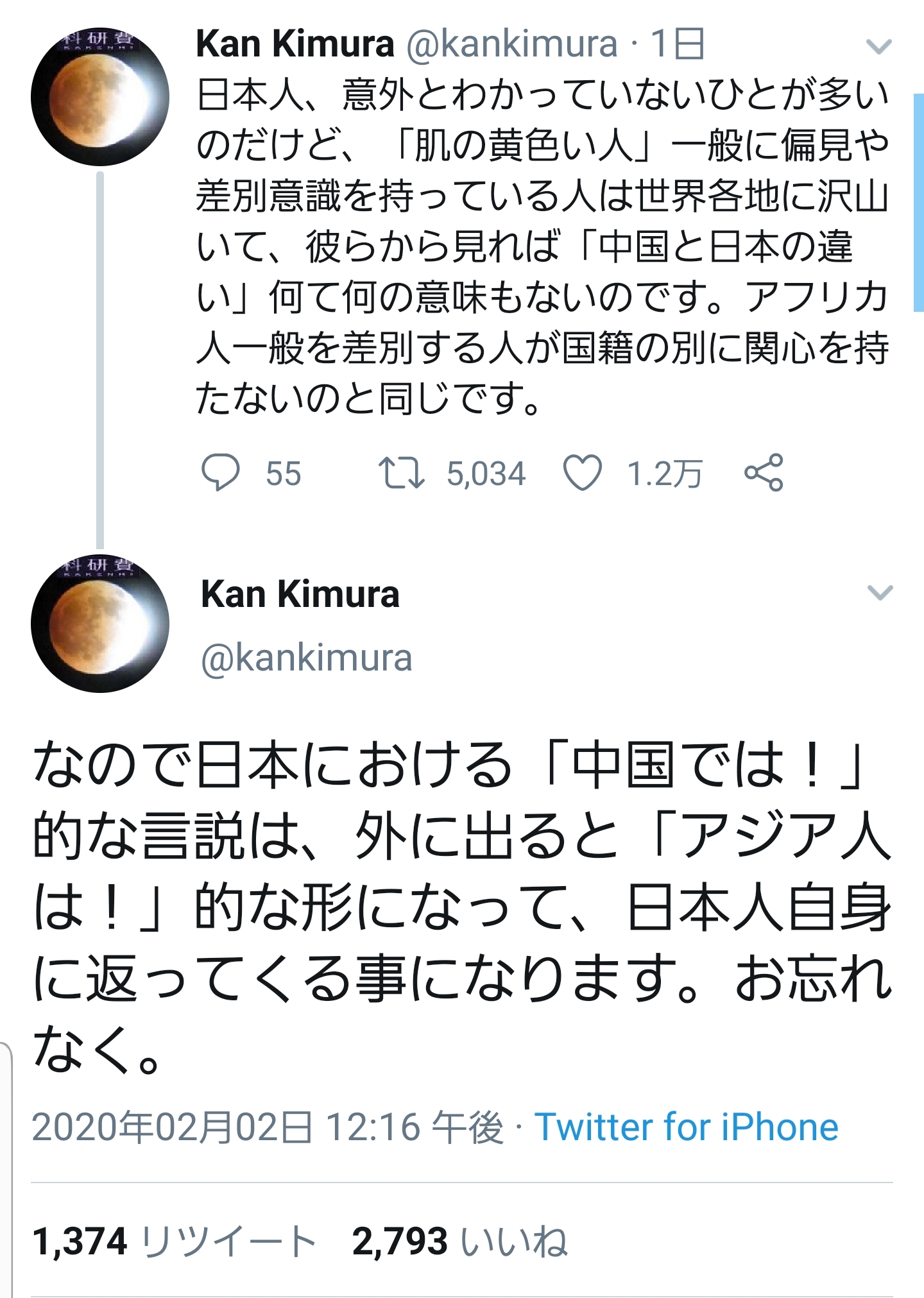 日本人、意外とわかっていないひとが多いのだけど、「肌の黄色い人」一般に偏見や差別意識を持っている人は世界各地に沢山いて、彼らから見れば「中国と日本の違い」何て何の意味もないのです。アフリカ人一般を差別する人が国籍の別に関心を持たないのと同じです。