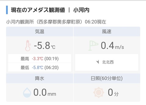 【悲報】東京で気温マイナス5.8℃wwwwwwwwwwww