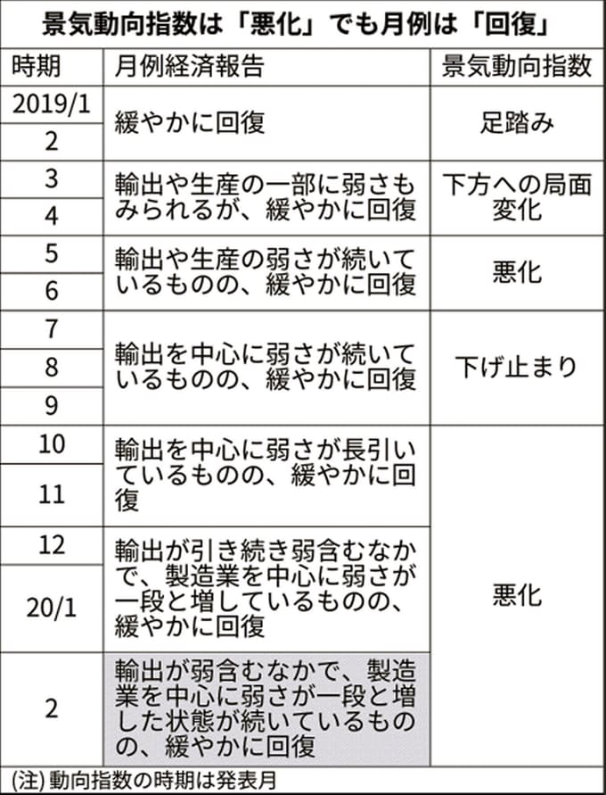 景気、統計とズレる回復判断 2月の政府月例経済報告