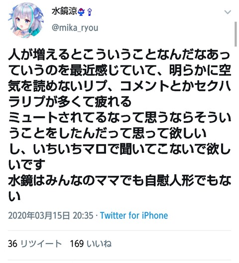 【悲報】大人気Vtuber「私はあなたたちの自慰人形じゃない」