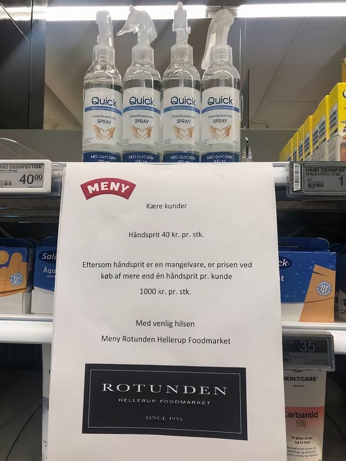 デンマークのスーパーが考案した手指消毒液の買い占めを食い止める素晴らしい値上げ策